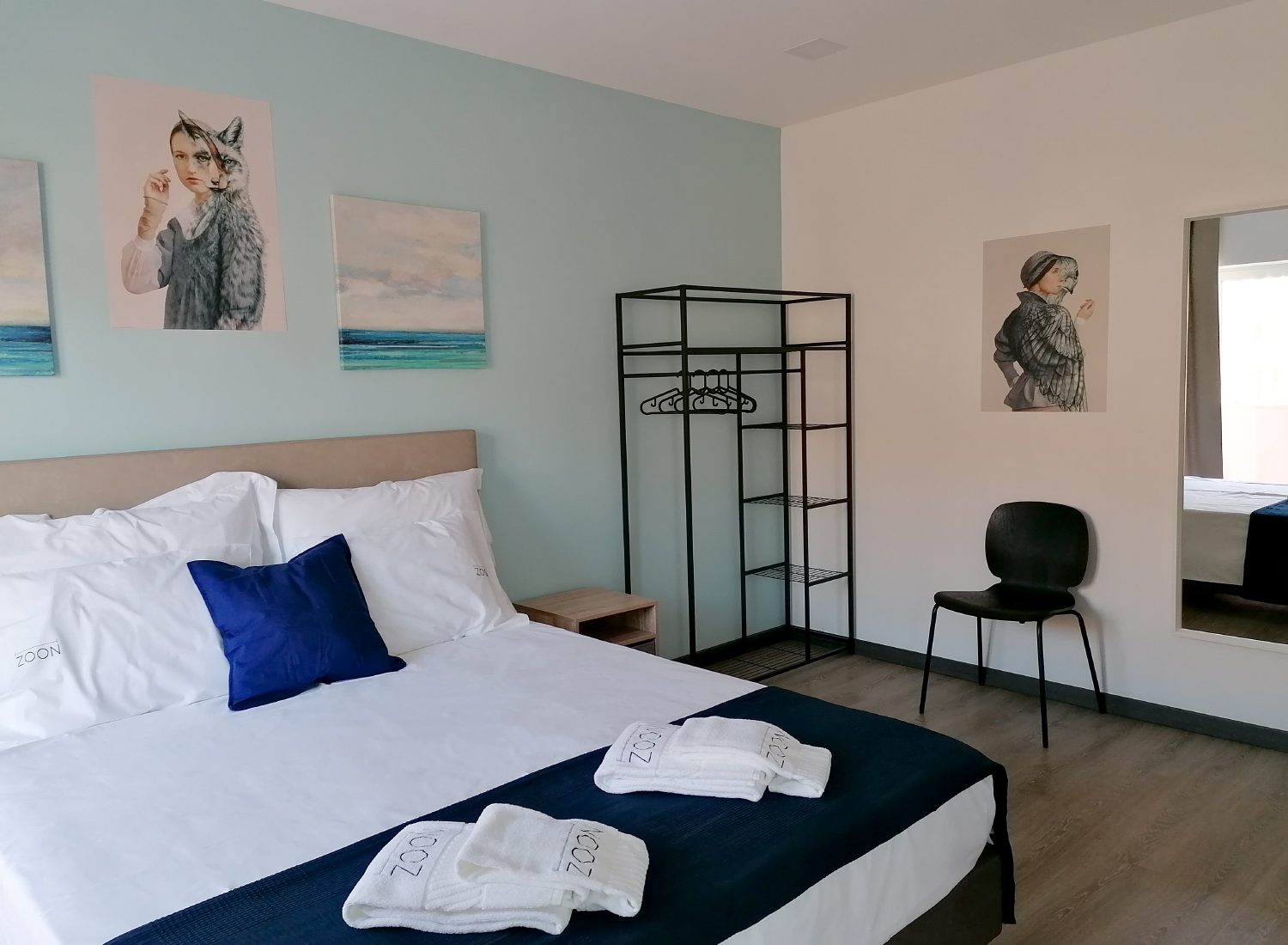 O H-ZOON dispõe de suites equipadas com ar condicionado, smart TV, rede WiFi, portas automatizadas e casa de banho privativa.